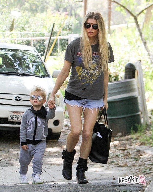 Ферги Дюамель в очередной раз продемонстрировала наряд в стиле рок на прогулке с сыном Экслом в Лос-Анджелесе вчера, сообщает Daily mail. 2-летний сын певицы, перенимая модные советы от своей знаменитой мамы, вслед за ней надел солнцезащитные очки.
