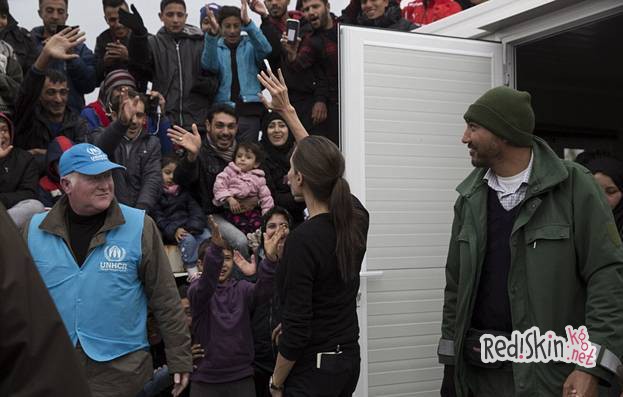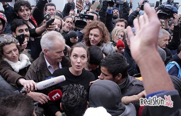 Анджелина Джоли инспектирует лагеря для беженцев из Сирии. Она уже побывала в Сирии и Ливане, а в среду утром посетила Грецию.