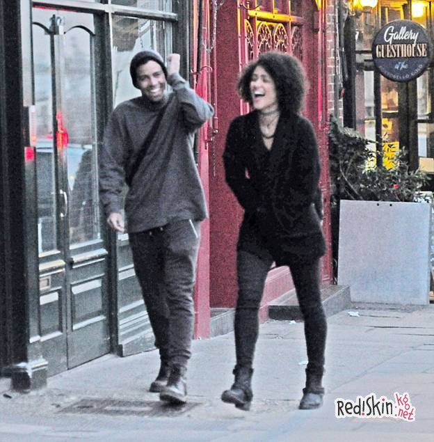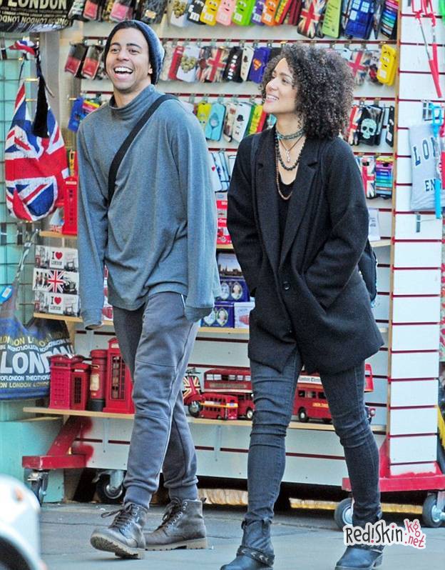Натали Эммануэль со своим другом на улицах Лондона