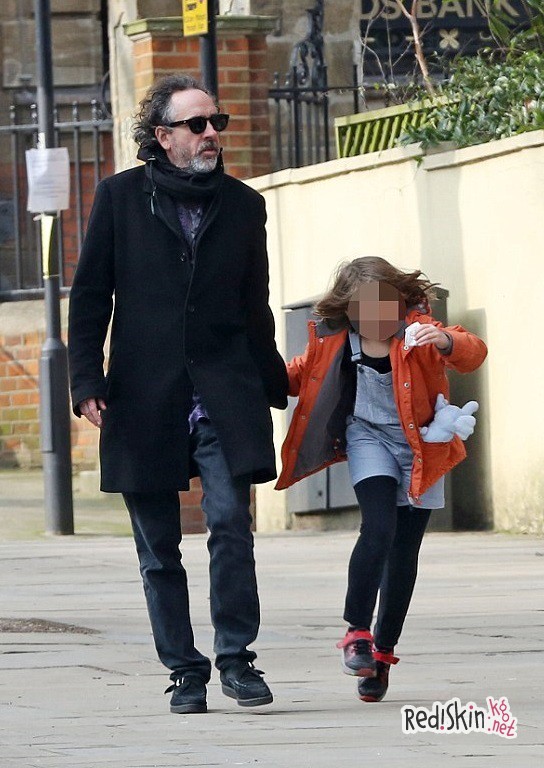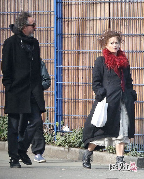 Тим Бертон и Хелена Бонем Картер на прогулке с детьми