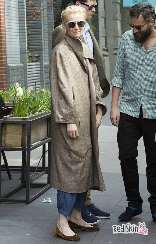 Тильда Суинтон известна своим оригинальным стилем в одежде, как на красных ковровых дорожках, так и в повседневной жизни. Вот и в четверг 55-летняя актриса не осталась без внимания, когда прогуливалась со своим бойфрендом - художником из Новой Зеландии Сандро Копп, по улицам Нью-Йорка.