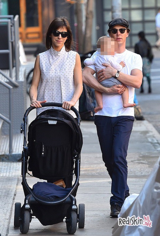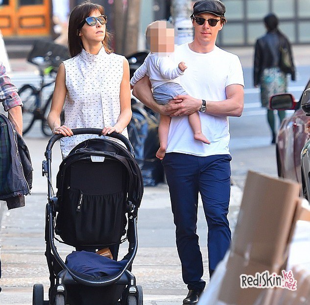 Бенедикт Камбербэтч на прогулке с женой и сыном в Нью-Йорке