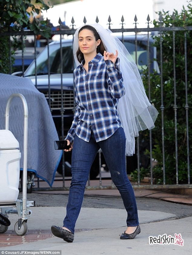 Звезда сериала "Бесстыдники" Эмми Россум продефилировала по улицам Лос-Анджелеса в странном наряде. Актриса была одета в клетчатую рубашку, джинсы и....фату.