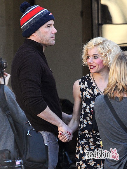 Бен Аффлек и Сиенна Миллер на съемках фильма "Ночная жизнь"