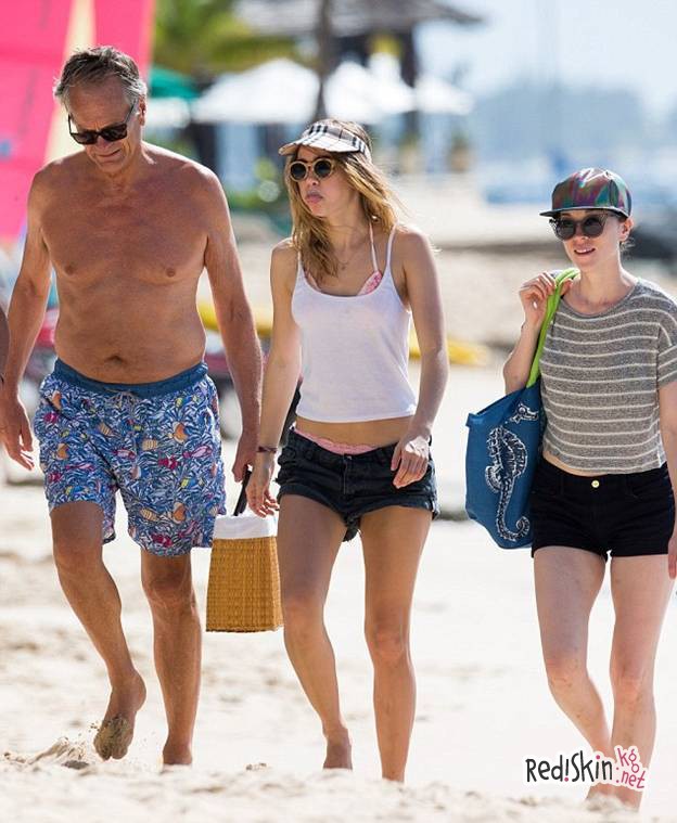 Она была замечена во вторник на побережье острова со своей любимой Сент-Винсент, подругой Суки Уотерхаус и родителями Пандорой и Чарльзом.