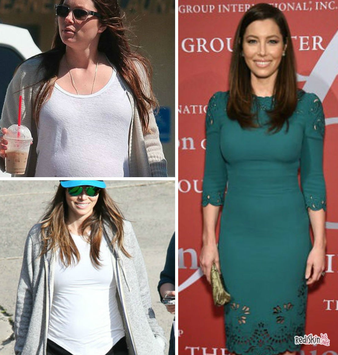 Джессика Бил до и после родов