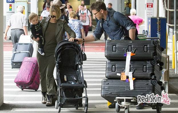 Сэм Уортингтон, Лара Бингл и их сын прилетели домой