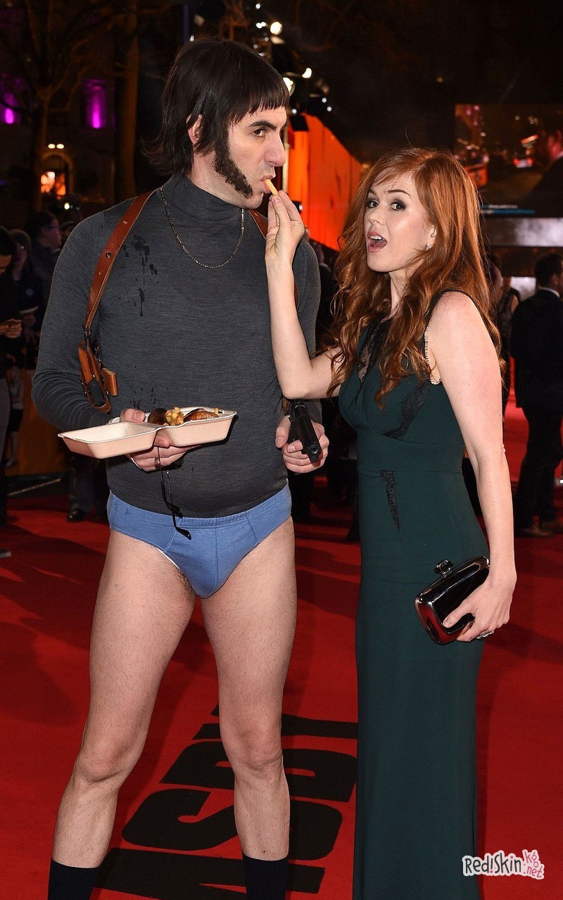 Он известен всему миру своими безумными выходками. На этот раз Саша Барон Коэн на британскую премьеру фильма "Братья из Гримсби" (Grimsby) пришел в трусах. 44-летний актер позировал перед папарацци, пока его жена Айла Фишер кормила его картофелем фри.