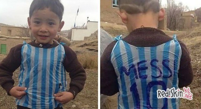 Пятилетний Муртаза из Афганистана, сделавший футбольную майку своего кумира из полиэтиленового пакета, получил подарок от Лионеля Месси. Муртаза: "Я люблю Месси. И моя футболка говорит о том, что Месси любит меня".