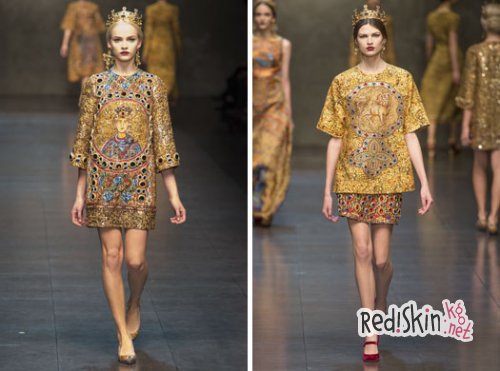 Как обычно на Миланском показе моды Дольче и Габанна всех поразили, ведь их смелая коллекция была посвящена осени-зиме 2013-14 годов. В тот момент, когда один папа отрекался от своего престола и когда конклав готовился к проведению выборов нового папы, дизайнерский дуэт решил по-особенному обратиться к теме христианства, для этого он воспел всю необъятную красоту религии сквозь призму современной моды.