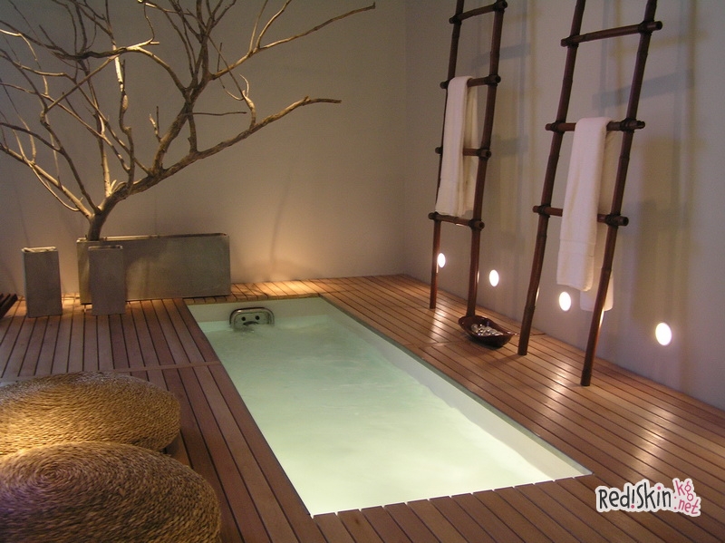 Немаловажную роль играет подсветка для пола. Этот вид освещения является дополнительным и декоративным. Для ванной рекомендуется использовать прочные и герметичные светильники, которые защищены от попадания воды. Также можете использовать цветные лампочки — это создаст световой эффект.