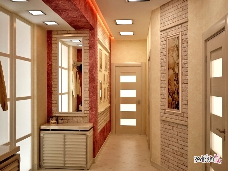 Градация отделки коридоров обуславливается частотой использования этого помещения квартиры. В коридоре человек проводит относительно небольшое количество своего времени и, конечно же, отделывать такие помещения не столь актуально по сравнению с другими имеющимися комнатами. Но, следует отметить еще другой аспект коридоров. Коридор — это еще и прихожая, а значит, помещение, которое в первую очередь предстает перед взором посетителей Вашего жилища. В прихожей устанавливают простые предметы, которые не обладают такими великолепиями как кожаный диван, плазменный телевизор и т.д. Но, предметы в прихожей не должны быть старыми, печальными угрюмыми.