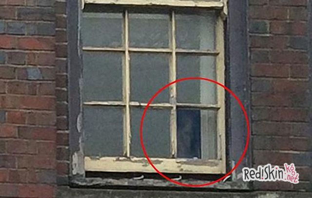 Сотрудники успели сфотографировать жуткое лицо призрака, когда тот выглянул в окно старого офисного блока