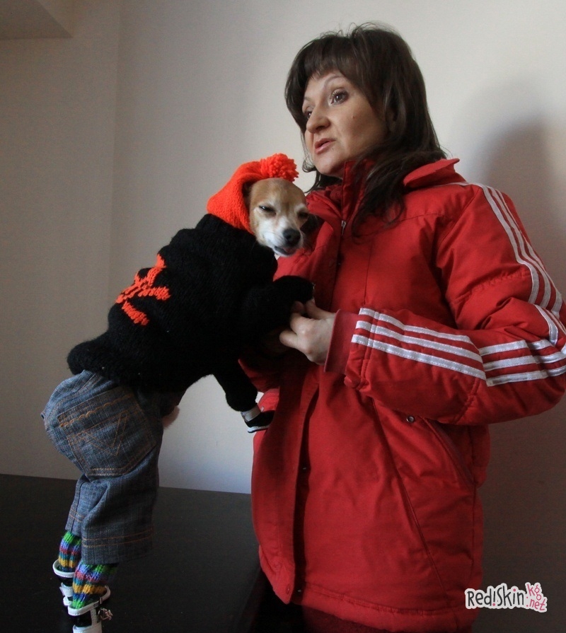 "Нравится ли Бене то, во что я его одеваю? Не знаю. Во всяком случае, особого сопротивления с его стороны не вижу. Думаю, он все-таки понимает пользу одежды. Когда в первый раз надели на него ботинки, он, естественно, попытался их снять. Но спустя какое-то время вышел на улицу босиком, наступил на снег, тут же завалился на бок и задрал лапы кверху - замерз", - добавляет Василиса Калашникова.